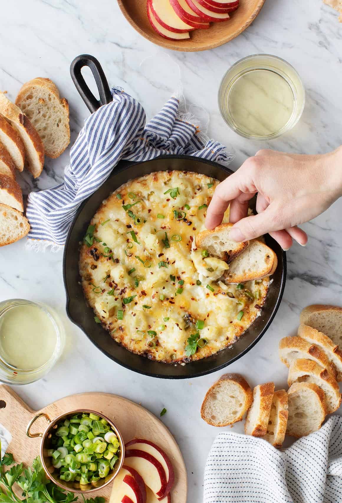 No one will know that the base of this Baked Cheesy Cauliflower Dip is actually a whole head of cauliflower! With Greek yogurt and Dijon for tang, this dip is a creamy, flavorful favorite that's delicious with a layer of cheese on top.