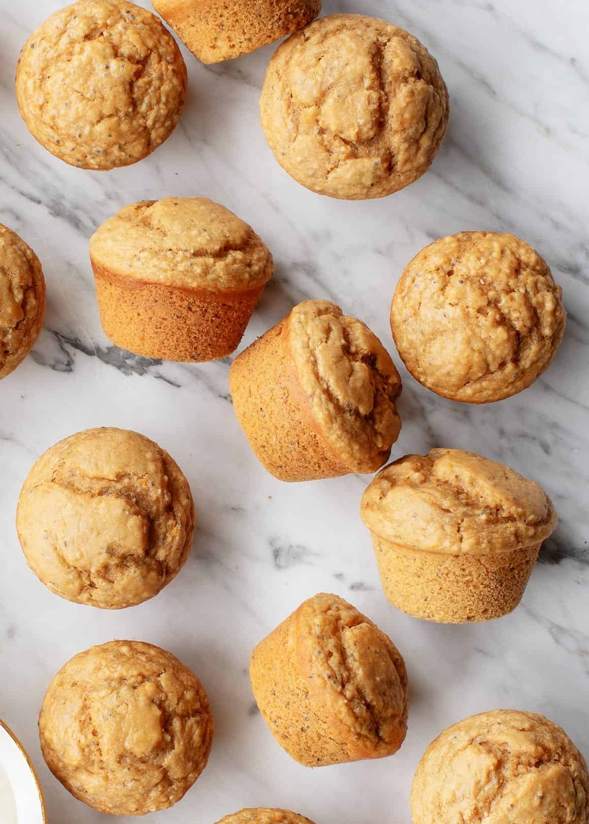In a medium bowl, whisk together the sugar, olive oil, lemon zest, lemon juice, and vanilla. Stir in the almond milk mixture. Combine the wet ingredients with the dry ingredients and mix until just combined. Fold in the chia seeds and use a ⅓-cup measuring cup to scoop the batter into the muffin tins. Bake for 16 to 17 minutes, or until a toothpick inserted in the middle comes out clean. Let cool for 10 minutes in the pan, then transfer to a wire rack to finish cooling.