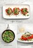 In a large skillet over medium heat, pour a few splashes of olive oil and toss in the scallions, paprika, garlic, and pinches of salt and pepper. Stir a bit, then add the lemon zest and greens. Stir some more to let the greens wilt down a bit. Add a big squeeze of lemon juice and stir in the herbs, toasted pine nuts, currants, and red pepper flakes. Add the couscous. Mix together until the herbs and greens are just wilted and everything is combined. Taste and adjust seasonings. (If it’s a bit too bold and spicy at this point, that’s ok – once you bake it with the sweet peppers, the flavors will dial down).