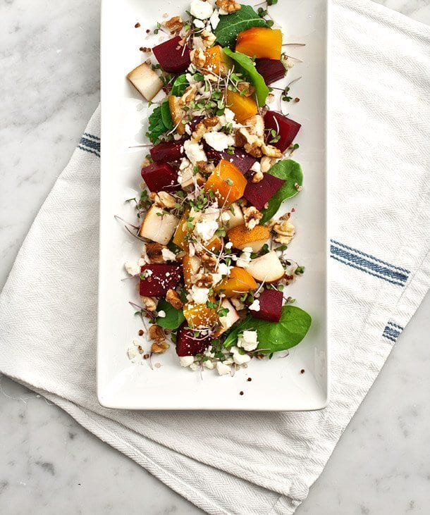 This roasted beet salad is a great fall dinner side or appetizer, and it packs up well for weekday lunches! Add quinoa to make this beet salad a meal on its own.