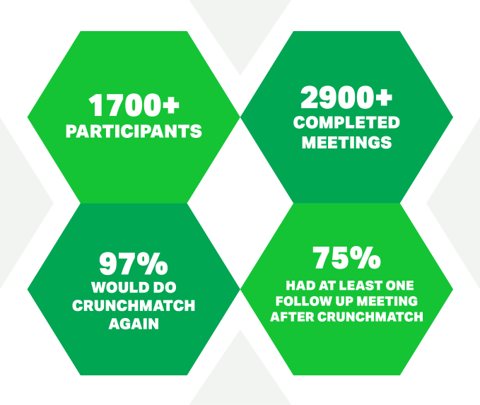 Only Investor, Insider, Founder, and Startup Alley pass holders at Disrupt SF 2018 are eligible to participate in CrunchMatch. Access to CrunchMatch is granted after registration and a link will be sent via email once the CrunchMatch portal is live.