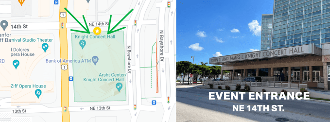 Registration will take place at Knight Concert Hall at The Adrienne Arsht Center* 1300 Biscayne Blvd., Miami, FL 33132 (Entrance is on NE 14th St.)