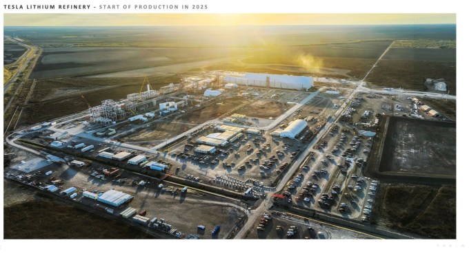 Tesla’s earnings report includes an update about the refinery. Tesla says it has processed its first “spodumene (lithium-containing concentrate) through the front-end of the lithium refinery” and that the material was “on-spec.” In other words, it’s a first step and definitely not close to battery-grade yet.