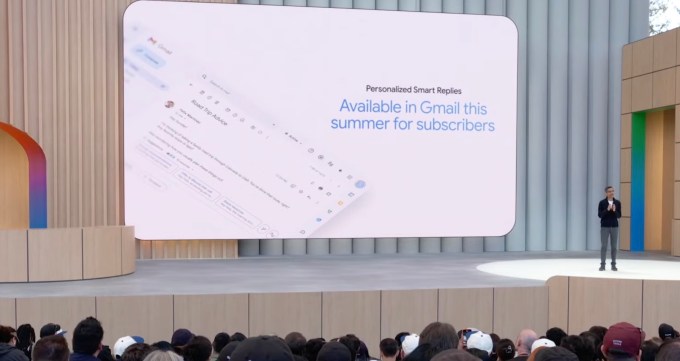 Before Sundar Pichai left the stage, he teased a Gemini-powered Gmail feature that can match typical greetings from past emails, capturing tone, style, and favorite word choice, and then automatically generating a reply.