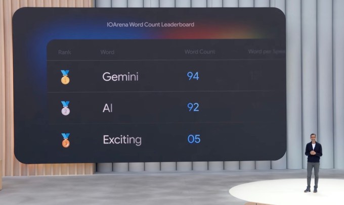 Google’s in on the joke. Toward the end of this year’s I/O keynote, the company put up a counter showing how many times its execs and product leaders mentioned “AI” onstage.