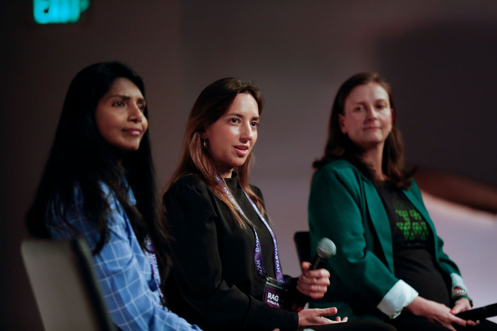 DataStax Chairman and CEO Chet Kapoor, LangChain co-founder and CEO Harrison Chase, and Unstructured founder and CEO Brian Raymond (credit: Regent Pictures)
