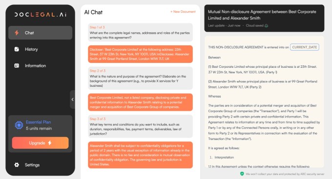 - Privacy Protection: DocLegal.ai prioritizes user privacy above all else, ensuring peace of mind for users. User information will not be used as training materials for the AI.