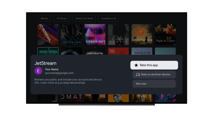 App developers who build for Google’s TV platform, Google TV, can now use an updated version of the In-App Ratings and Reviews API to prompt viewers to leave a rating and review for a piece of content, like a TV show or movie. The feature allows users to see the rating averages, browse reviews, and leave their own reviews directly from the app store listing page on Google TV.